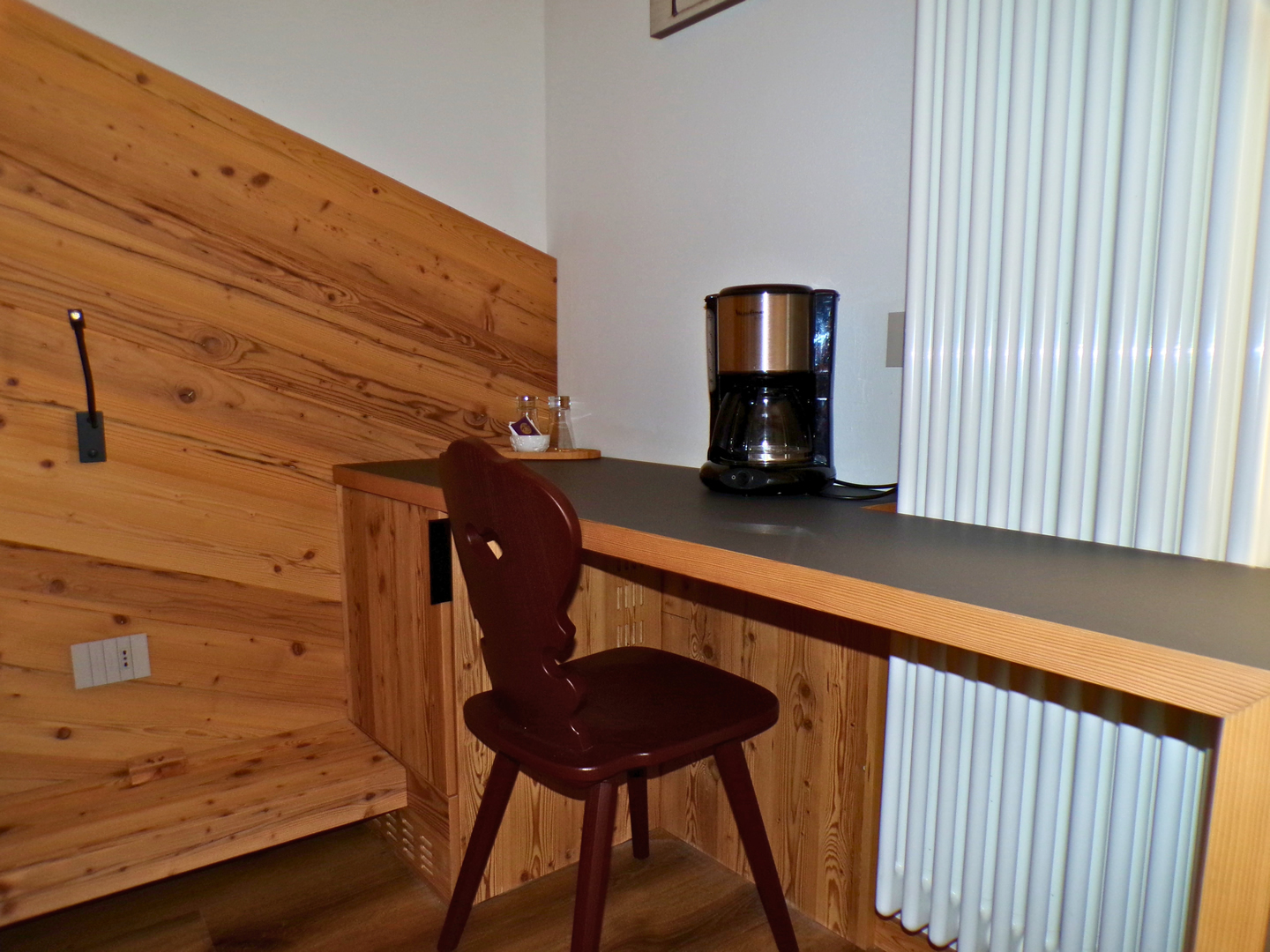 Balcone privato dove si può consumare una bevanda guardando la cima del Piz Galin e allo stesso tempo la Val di Non.